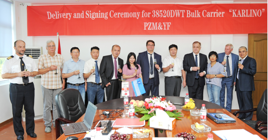 2019年7月30日下午,揚帆集團下屬浙江東海岸船業(yè)有限公司建造的一艘38520噸系列散貨船正式簽字交船。