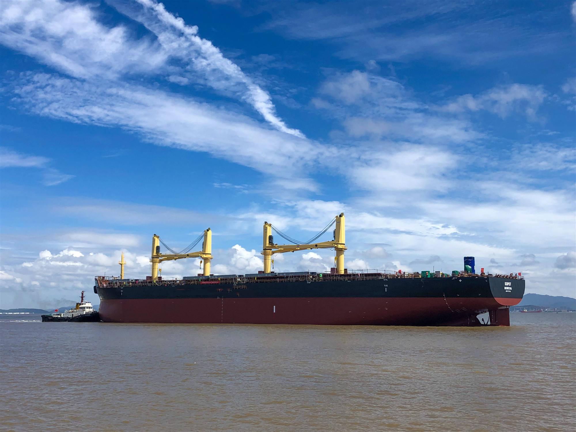 2019年8月3日上午,揚(yáng)帆集團(tuán)下屬浙江東海岸船業(yè)有限公司船臺(tái)在建的一艘38520噸系列散貨船順利實(shí)現(xiàn)下水。