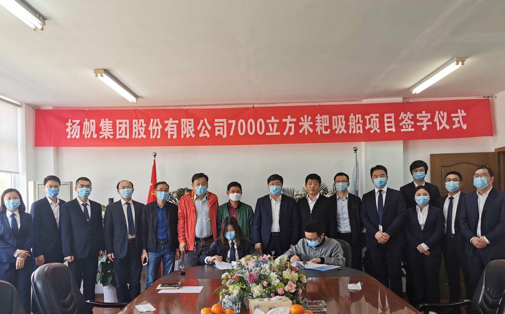 2020年4月29日,揚(yáng)帆集團(tuán)股份有限公司與浙江省內(nèi)一船東簽署一艘7000立方米耙吸挖泥船項(xiàng)目。