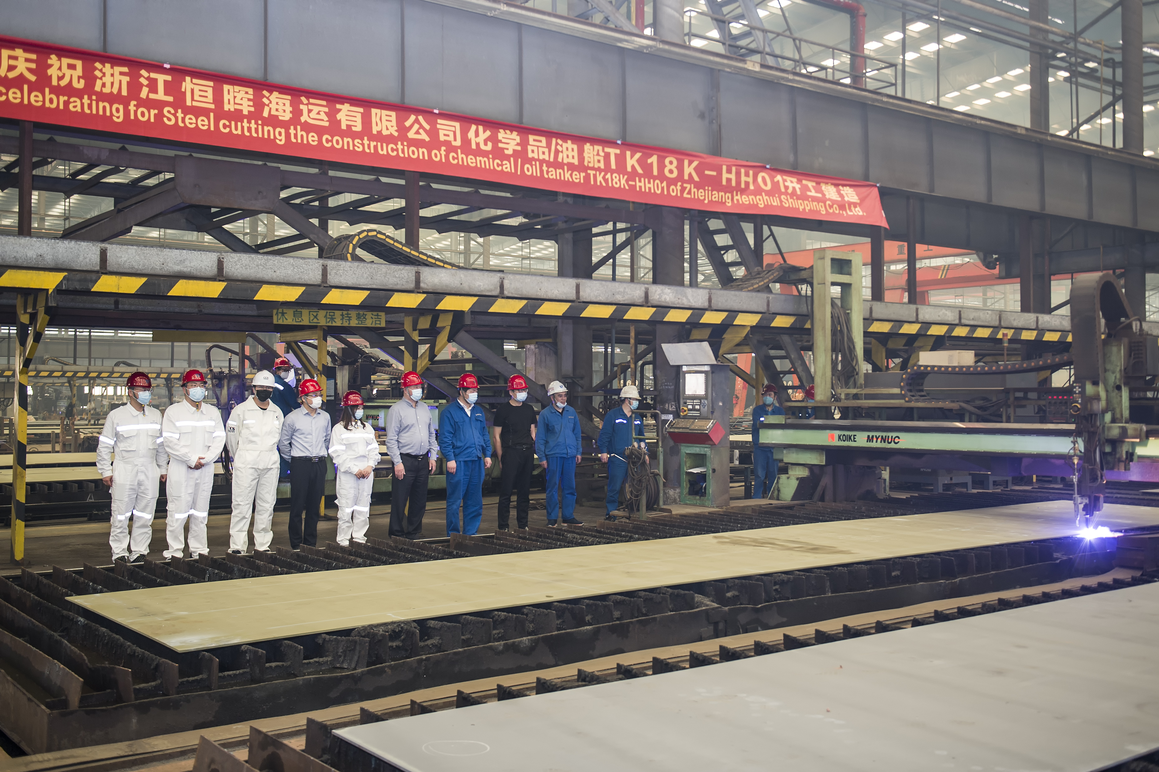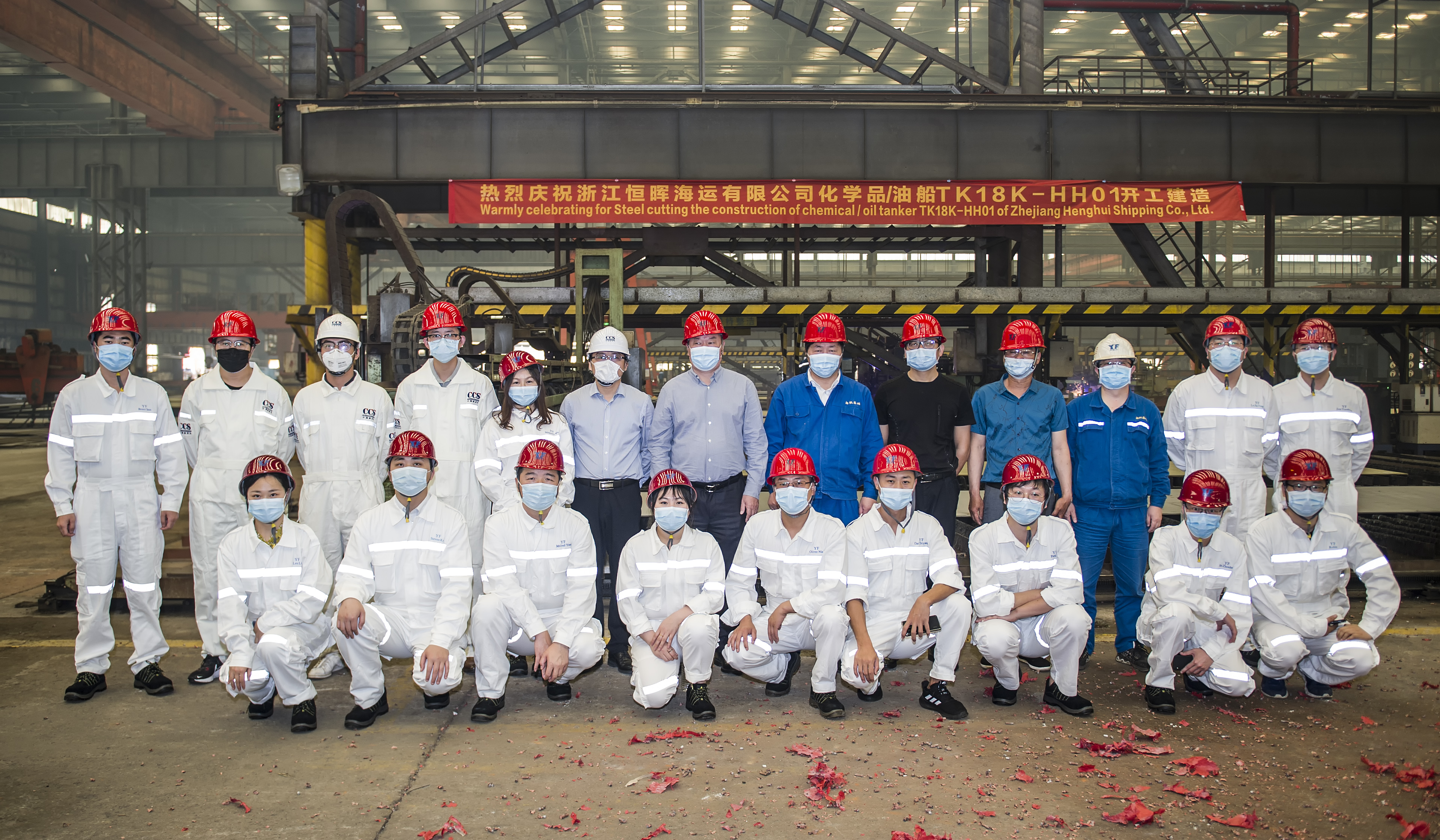 5月19日上午9點28分,由揚帆集團為浙江恒暉海運有限公司建造的18,000噸成品油/化學(xué)品船在東海岸船業(yè)有限公司聯(lián)合車間正式點火開工,浙江恒暉海運公司董事長和執(zhí)行董事、揚帆集團總裁等一行參加了開工儀式。該項目合同于2020年1月1日正式簽訂并生效,實際開工時間比原計劃提前近一個月,為船舶如期交付奠定了基礎(chǔ)。