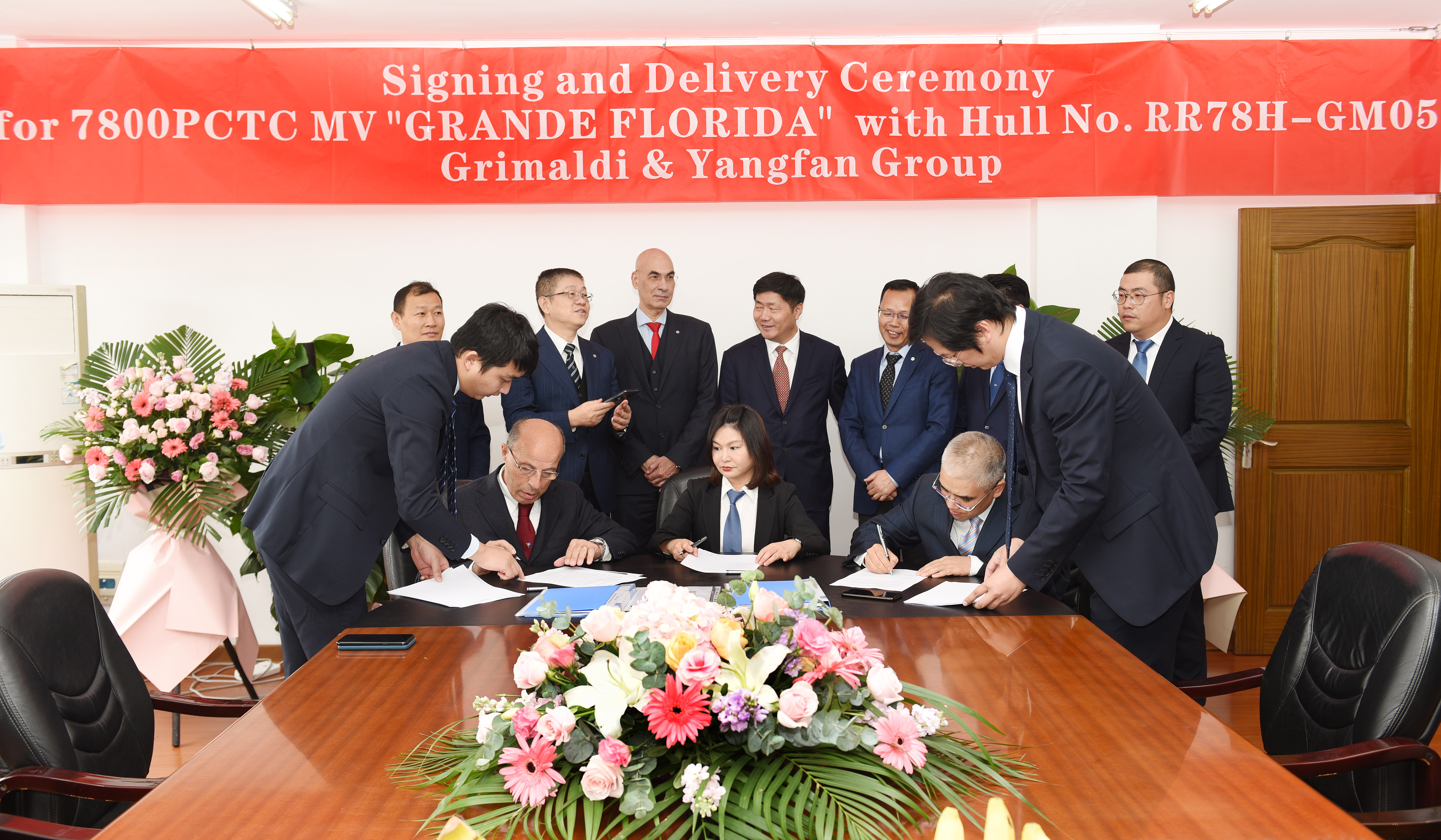 2020年10月19日,由揚(yáng)帆集團(tuán)為意大利船東Grimaldi集團(tuán)公司承建的7800車位汽車滾裝船(PCTC)系列船“GRANDE FLORIDA"”(船號(hào)GM05)正式簽字交付。該船距第4艘系列船順利交付僅隔了47天。