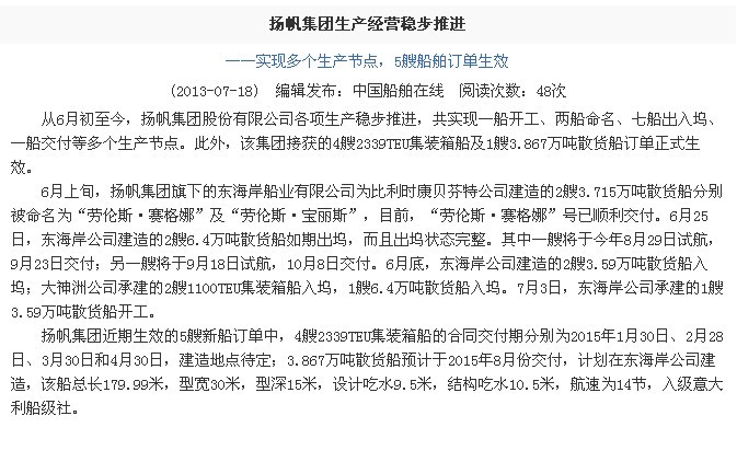 中國(guó)船舶在線:揚(yáng)帆集團(tuán)生產(chǎn)經(jīng)營(yíng)穩(wěn)步推進(jìn)
